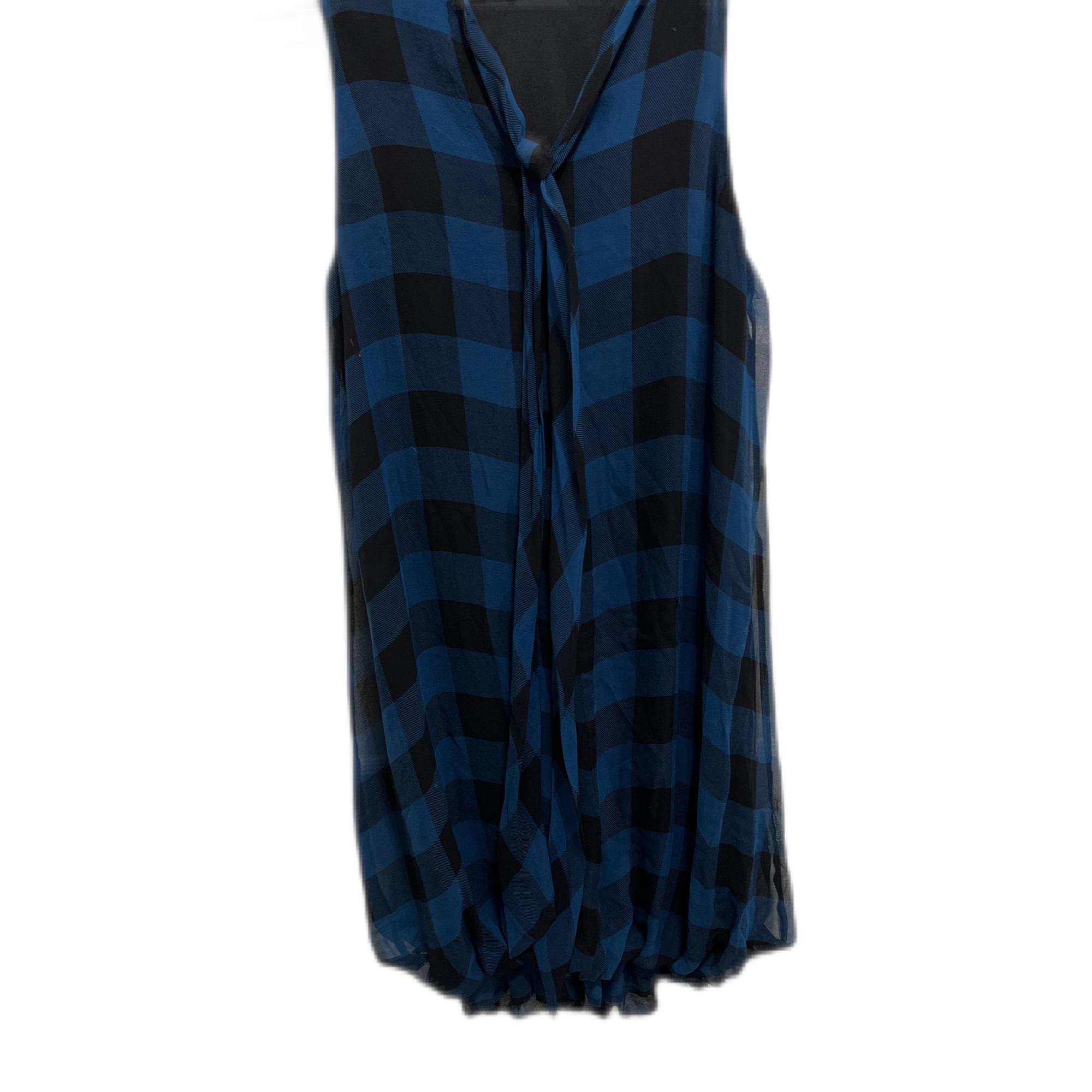 Large Check Ruffled Neck and Hem Tie in Back Pullover