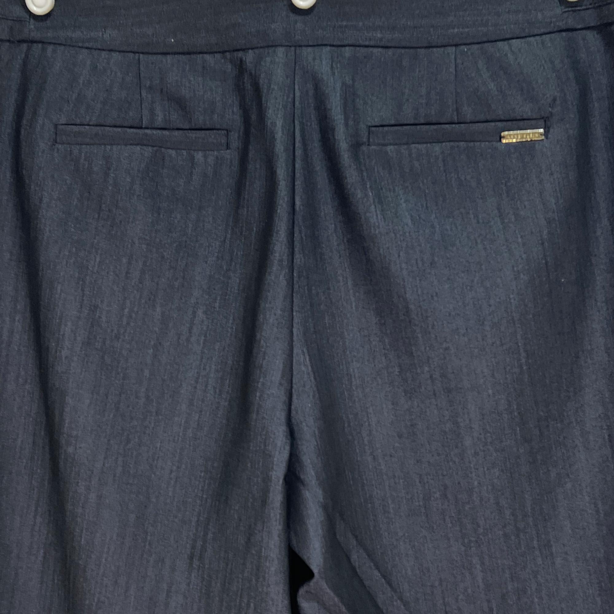 Blue Gray Texture 2 Gold Logo Buttons Flat Front 2 Front Pockets 1 Back Pocket
