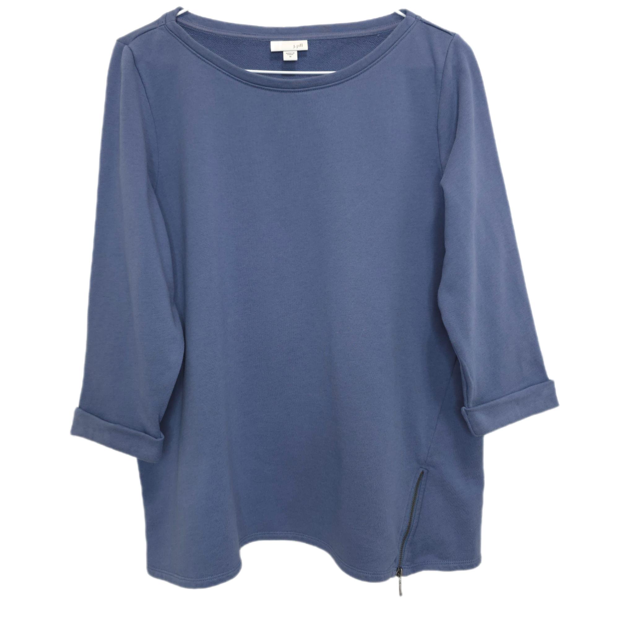 This is an excellent condition J. Jill Relaxed Fit 3/4 Sleeve Pullover Top, featuring a blue zipper embellishment at hem. Anyone would love the comfort and style of the J. Jill Relaxed Fit 3/4 Sleeve Pullover Top.