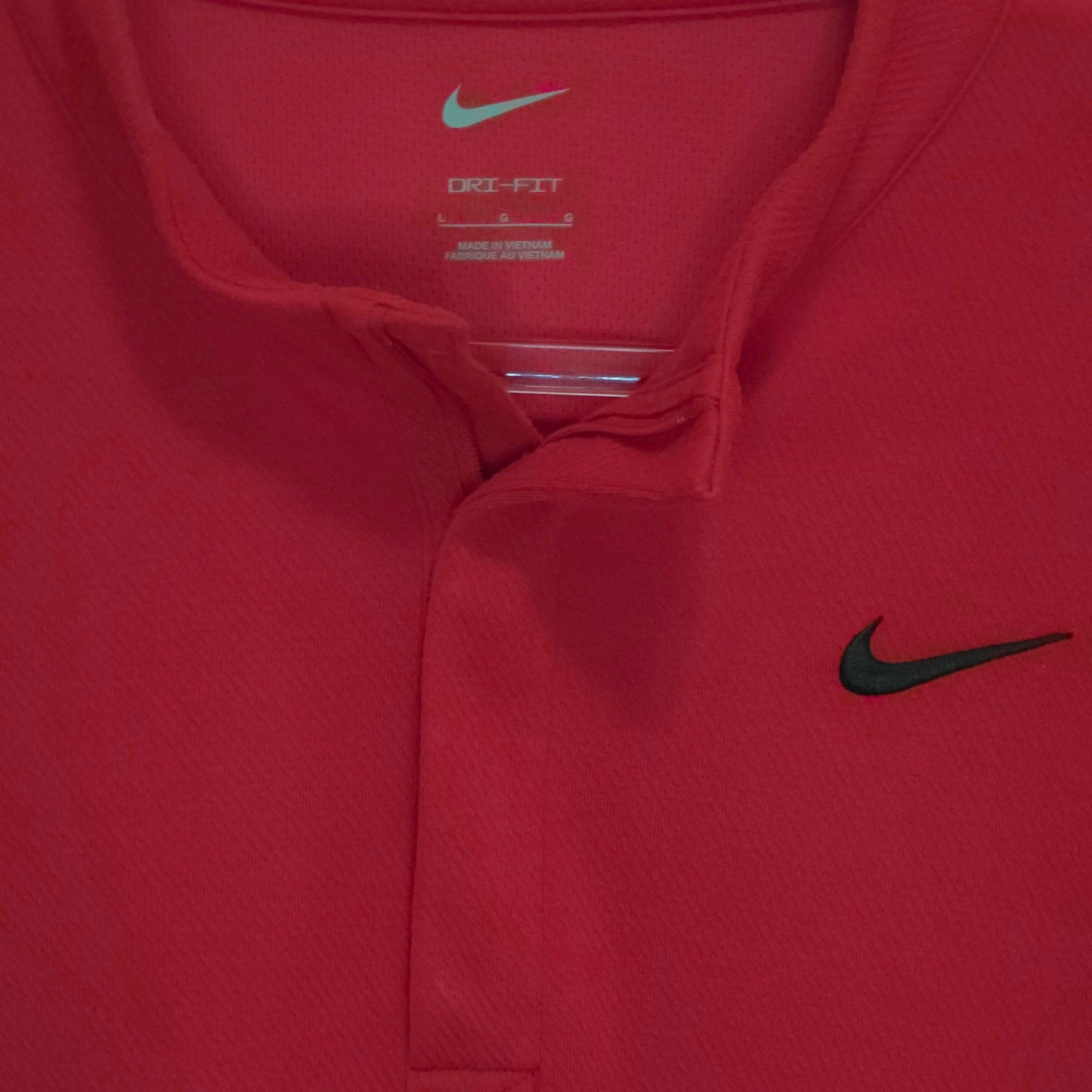 Excellent Condition Red Nike Dri-Fit 1/4 Zip Stand Up Collar Pullover with Black Swoosh