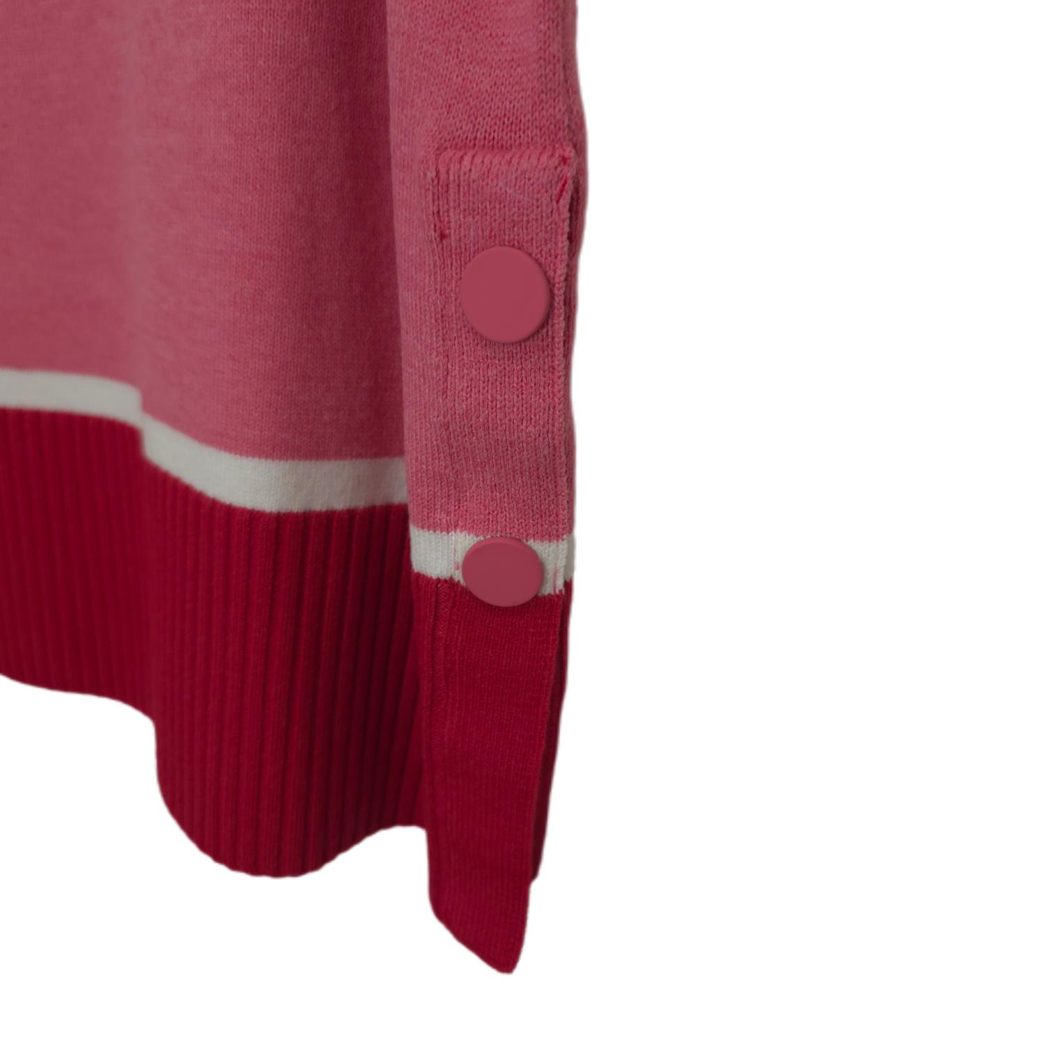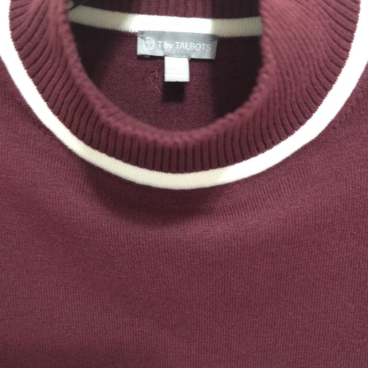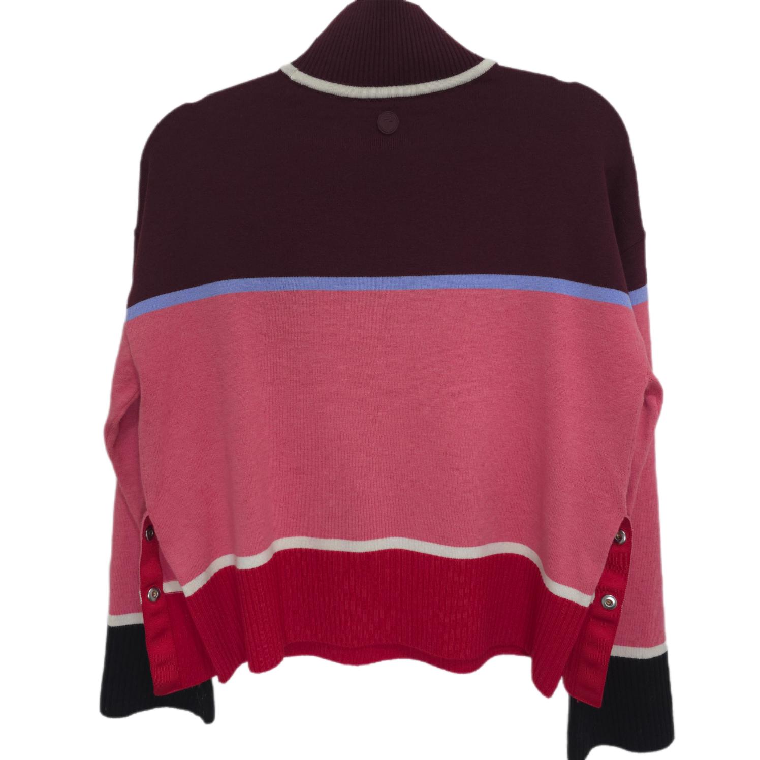 Excellent Condition T by Talbots Oversized Cropped Sweater Burgundy Pink Blue Stripe Mock Neck